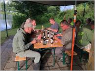 Gegen 19 Uhr trafen sich dann alle Angler bei der Schutzhütte zum Grillen. Nach dem gemeinsamen Essen ging das Angeln weiter . Um 23:30 Uhr trafen sich dann wieder alle zur zweiten Grillrunde.